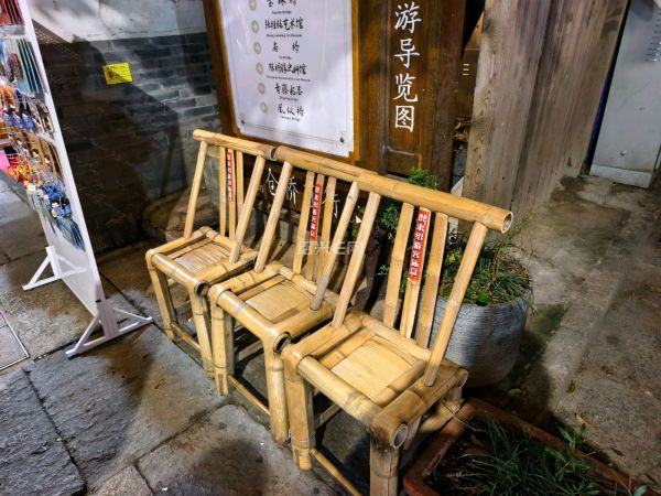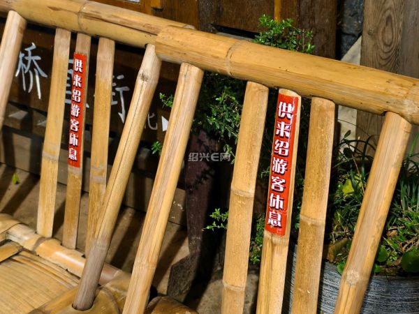 近日,绍兴仓桥直街为游客增设古朴竹椅,椅身贴有“供来绍游客休息”标识,尽显水乡温情。
