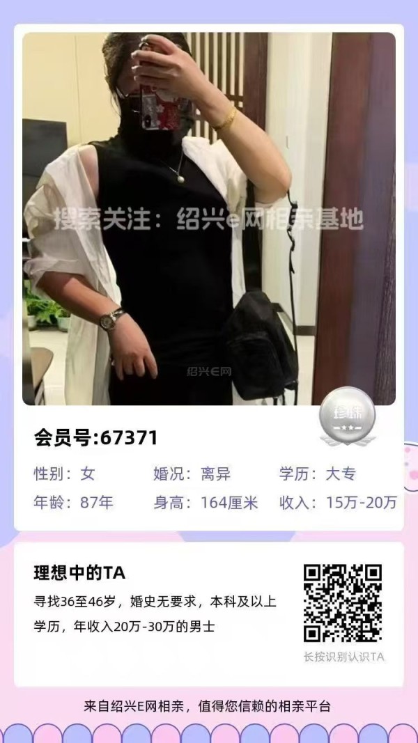大专学历,企业部门主管,收入15-20万,有房有车。