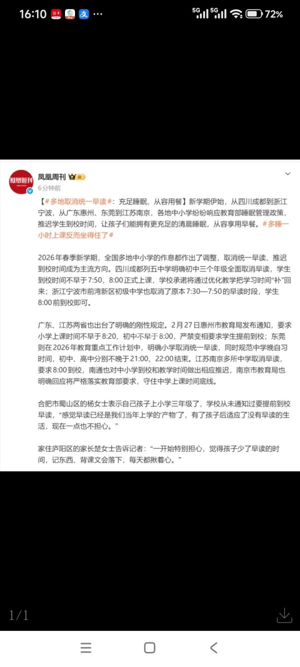 一则“多地取消统一早读”的消息