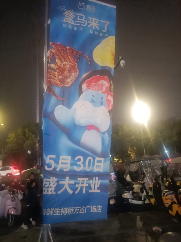 晚上散步发现万达广场门口盒马竖旗已经挂起来了,开业时间定位5月30日,到时候盒马X街区应该会一起亮相吧!目前内部正在紧锣密鼓的装修!