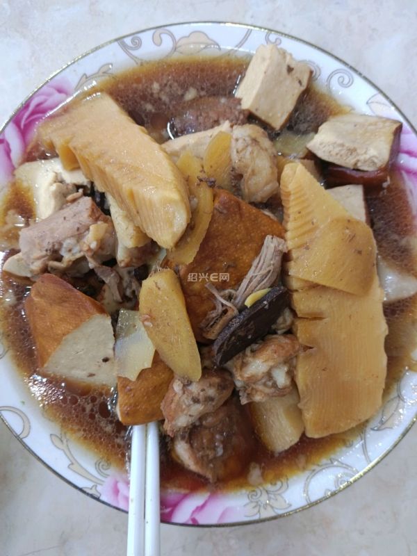 猪肉+豆腐干+毛笋+花椒+生姜+桂皮+黄酒