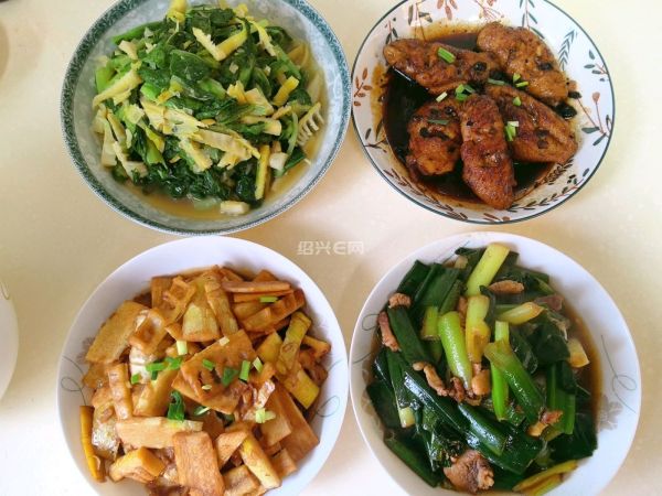今日晚餐:梭子蟹炒年糕、糖醋里脊、腊肉蒸蛋、爆炒螺丝、红烧鸡翅、炒葱苗、油焖笋、笋丝炒小白菜~居然差不多光盘了,家有大胃王,不愁