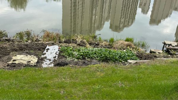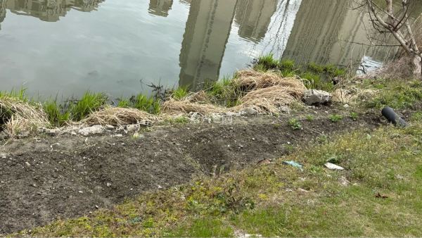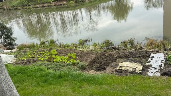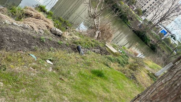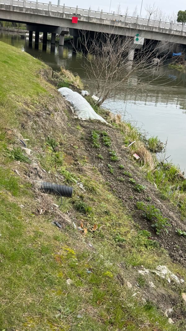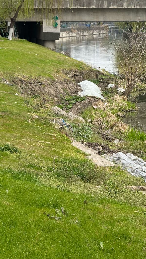 原本是河岸旁整洁美观的公共绿化,如今却被人肆意开垦,翻出了一道道土沟,种上了各类蔬菜。原本的草坪被破坏得面目全非,裸露的泥土、随意堆放的杂物,不仅让这片区域变得脏乱不堪,更破坏了生态环境与城市风貌