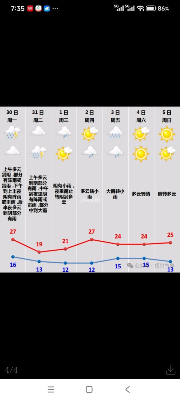 绍兴市气象台2026年3月31日6:00发布短期天气预报: