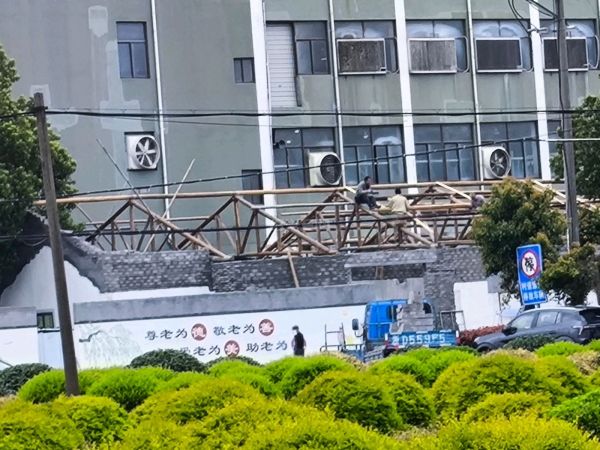 钱清街道劳动村陈家埭自然村村口一花岗岩加工作坊数间平房,自从3月21日开始向南河边扩建及加高房顶(如下图片)一系列翻建施工至今,其间经过数次市民热线及【民呼我为】投诉反映,于3月30日停工一天。然在案件处理等待中利用晚间及今天上午加速施工,现已初步完工。真不知道当事人有多大的底气如此无视!同时也期盼政府相关职能部门能有效阻止,拆除违建恢复原状。