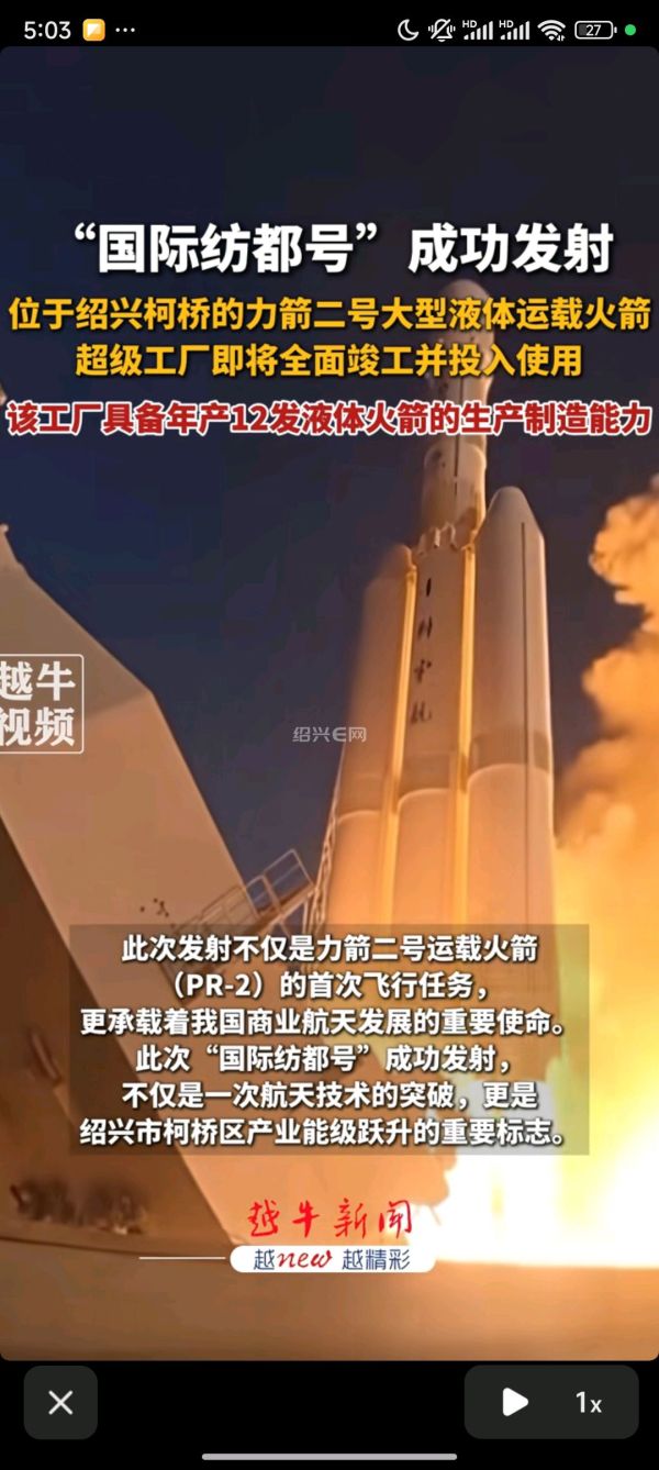 这次力箭二号就是民企牵头的好例子,绍兴能搭上商业航天的快车,确实离不开民企的冲劲!
