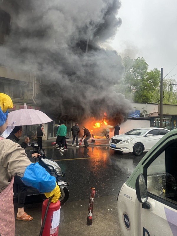 旁边没有易燃物,烧完就好了,用什么灭火器啊,好像烧了一半的车还能用一样的