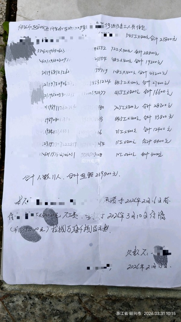 回 第12楼(nbu1996)的帖子 nbu1996:有没有可能包工头钱已经结走了,然后自己花掉了? (2026-04-01 08:33)