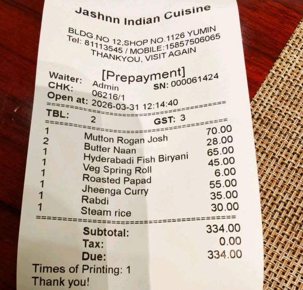 店家的小票有待改进。