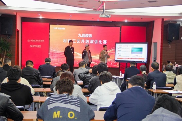 3月31日,绍兴九鼎装饰材料工艺升级演讲比赛在金德隆11幢文化大讲堂举办。公司设计师、项目经理、销售顾问、工程监理等一线岗位员工踊跃参赛,以演讲为媒打磨专业能力,传递九鼎高端墅装的品质与价值。