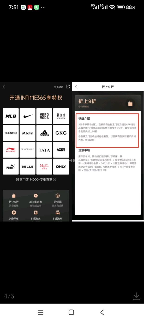 记者通过喵街APP查询发现,阿迪达斯确实在银泰365会员折扣商店范围内,但详情页标注:“365专享购物折扣,在银泰商业指定门店及喵街APP指定品牌范围(个别商品除外)购物可享受折上9折,黄金珠宝等个别品类折上98折。各品牌及门店权益或存在差异,以品牌商品实际展示折扣为准。”