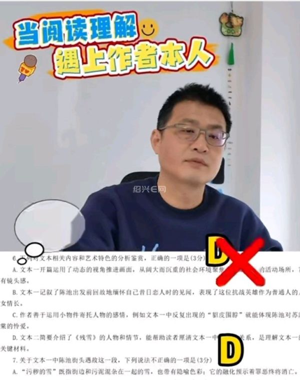 他坦言,小说家的创作思维和考试思维本就不同:小说创作聚焦人物呈现与极致抉择下的人性,没有标准写法;而出题老师有专属考量,考生自然要以考试答案为准。