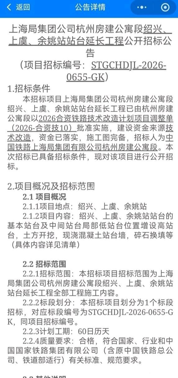 前两天在绍兴站乘火车听绍兴站的站务说,铁路绍兴站5月份要对绍兴站的站台进行升级改造,今天看到相关“招标公司”已经在网上贴出来了。