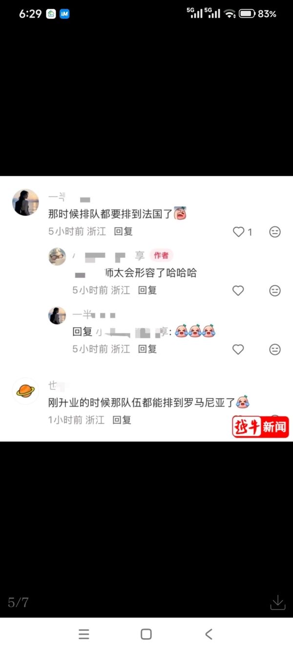 开业初期,这家面包店凭借网红属性火爆一时,门店前常年排起长队。有绍兴网友调侃道“排队都要排到法国了”“刚开业那时候队伍都要排到罗马尼亚了”。
