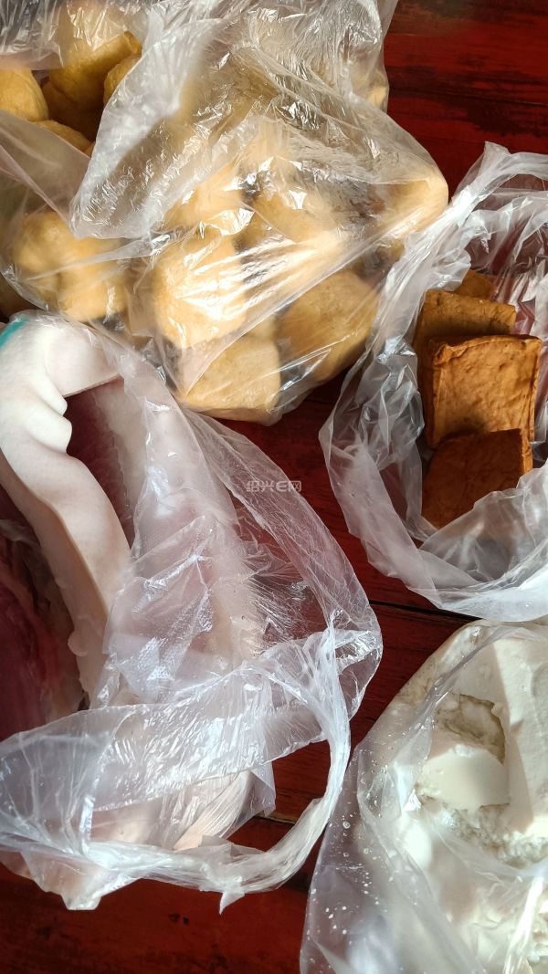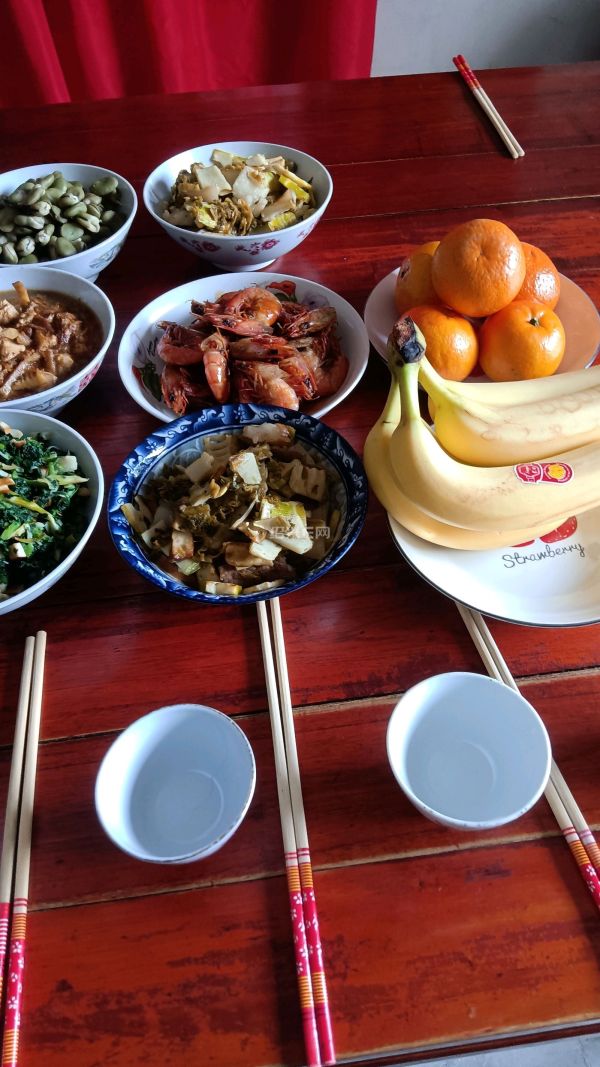 一大早老妈就去买了菜(鱼、虾、肉、豆腐、豆干)和水果等。
