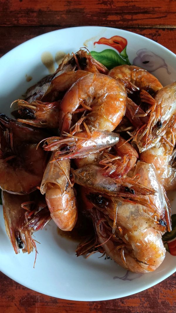 今日胖头鱼11元一斤,一条4斤多。对虾便宜30元一斤。