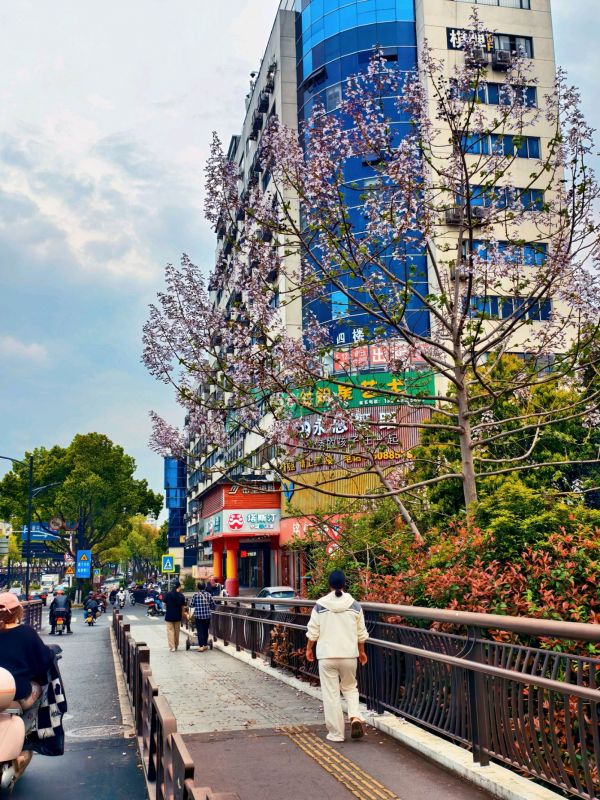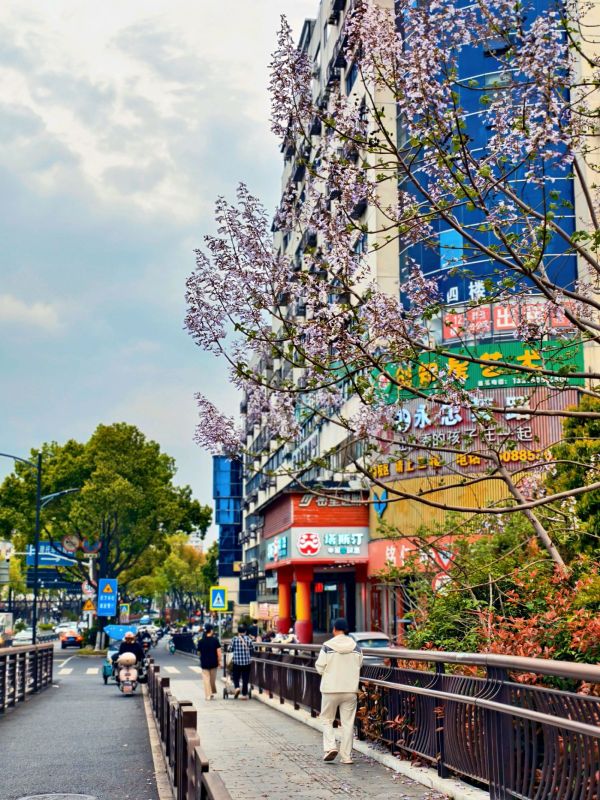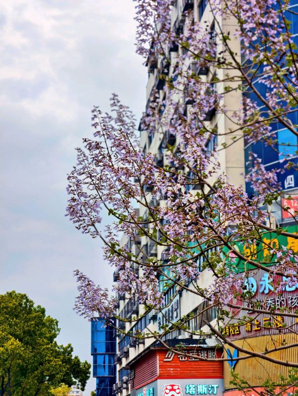 四月春风拂面,城南大桥边泡桐花竞相绽放,淡紫繁花缀满枝头,为城市增添一抹温柔亮色,勾勒出春日里动人的生态美景。
