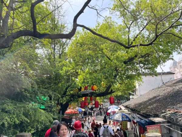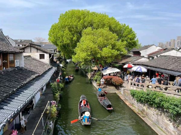 春季的八字桥,正是最暄软的时候。两岸的苦楝树开了花,紫白碎花映着黛瓦,空气里浮着淡淡的甜香。石板路上游人如织,桥栏边挤满了拍照的游客将百年的古桥衬得格外鲜活。