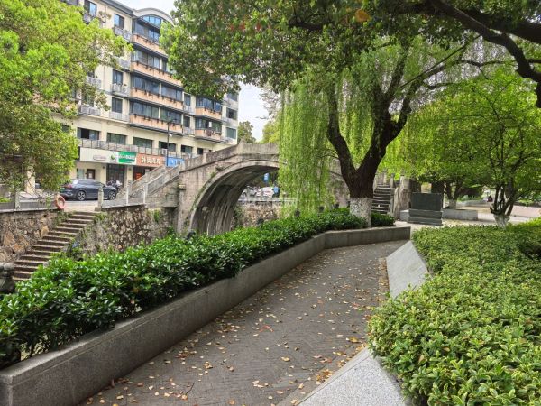 店对面河道上有一有些年头的桥,名桂芳。
