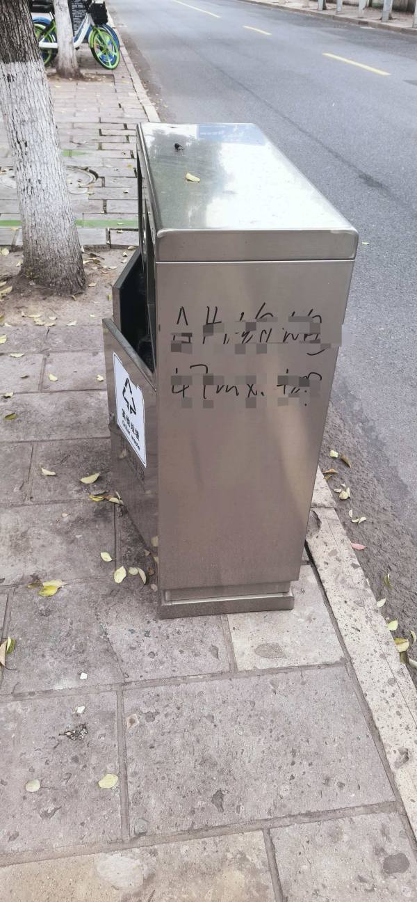 在鸿宾路,香江名邸东门左手边的垃圾桶侧面,有不良的涂鸦,希望有关环卫部门能够及时擦除。以免部分群众上当受骗。