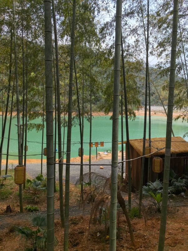 误入热带雨林秘境,位于在上虞长塘的靠溪岙水库旁,有一家咖啡馆(不知道什么缘故,闭馆了),水库边有山有水有竹林,水很清澈碧绿,这个季节山上还有不少映山红,拍照打卡很出片,适合摆个摊,发个呆,放空下,挺舒服的,夏天应该挺凉快的。