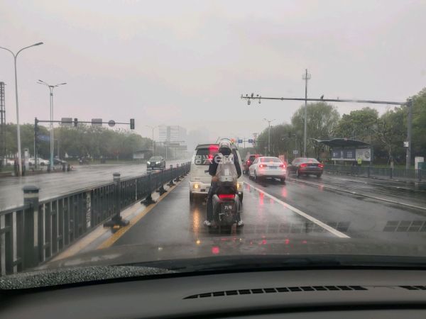 于越高架上快到北站那里天天都遇到两个学生,也是一人一辆九号电瓶车,六点四十多分的时候,太危险了