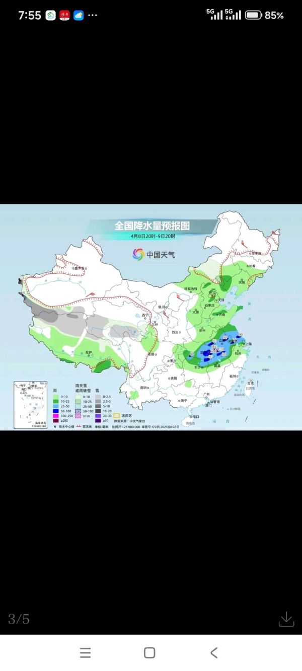 今天,冷空气开始南下,又将推动雨带逐渐南落,同时雨势有所减弱。预计苏皖南部、江西北部、浙江等地将有中到大雨,局地暴雨。