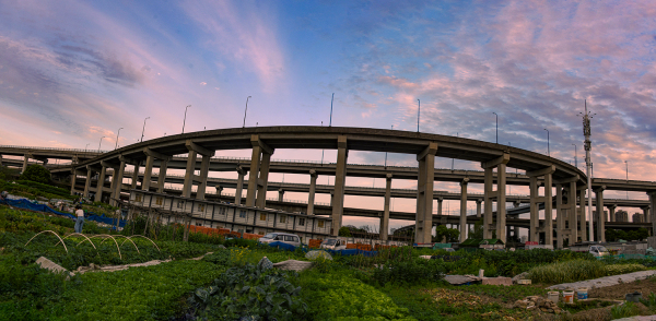 青甸湖旁的公铁立交桥
