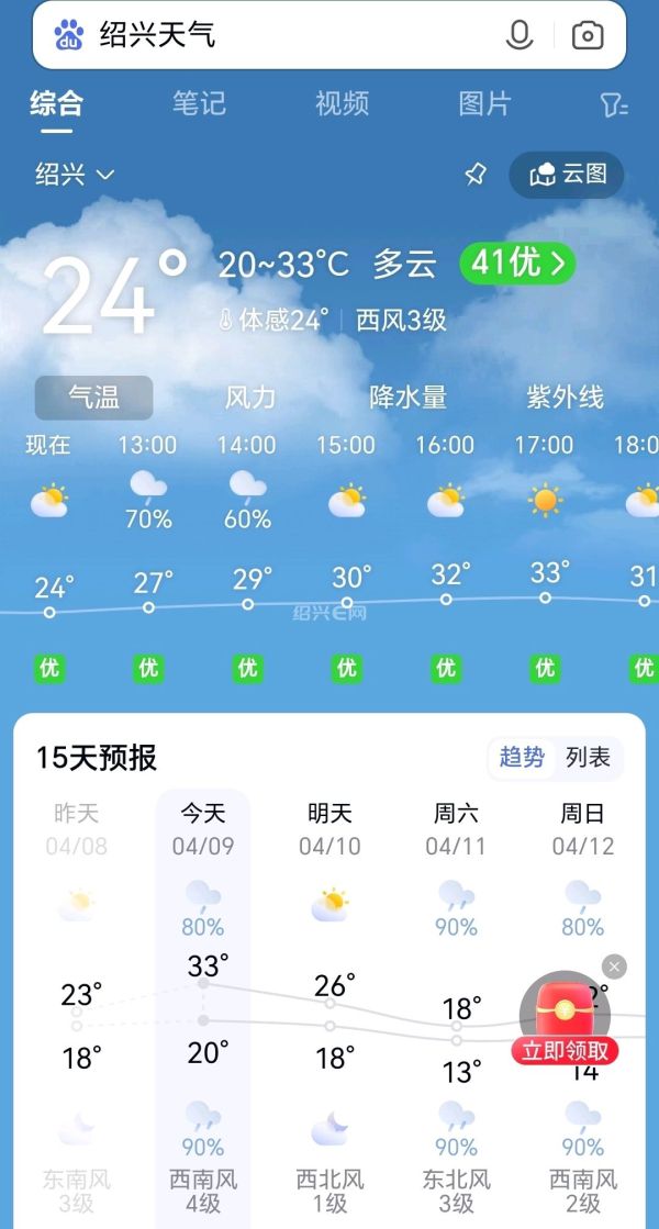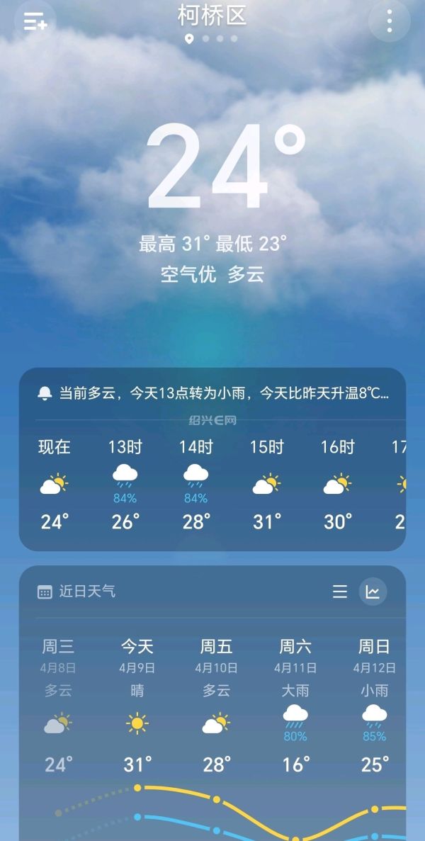 现在好了,一整天都天气预报要么是晴,要么是多云,有么是雨,没有转的。而且哪怕这样也是不准的。昨天的天气预报是多云,结果午后乌漆麻黑还下了小雨。早上看过是多云的,太阳还真好,结果害得我还跑回家收衣服,真是... (2026-04-09 10:03)