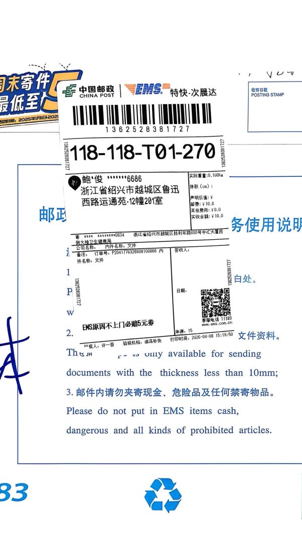 收到绍兴市越城区卫健局的投诉举报回复函,本是市民诉求得到回应的时刻,可快递面单上的一个细节,却让这份“官方回复”的分量大打折扣:收件地址分毫不差,联系电话却错得离谱。