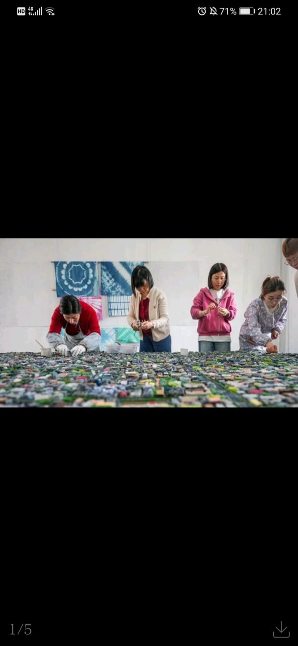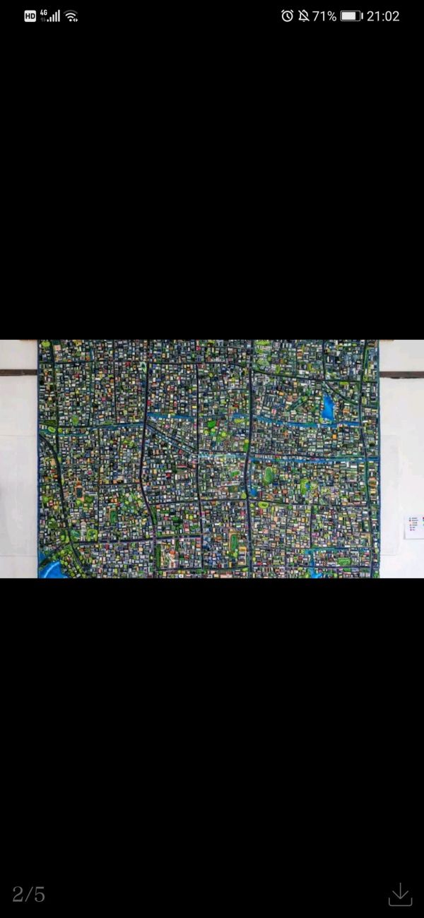 据浙江民艺拼布博物馆设计师平萍介绍,这幅作品使用了上百条废旧牛仔裤,经过拆解、裁剪、拼贴而成。“牛仔布质地坚硬,裁剪和缝制比普通布料费力得多,有时一个小细节就要反复调整好几天。”为了确保地图的精准度,团队反复对照卫星地图和实地照片,力求每一处街巷、每一段水系的走向都经得起推敲。
