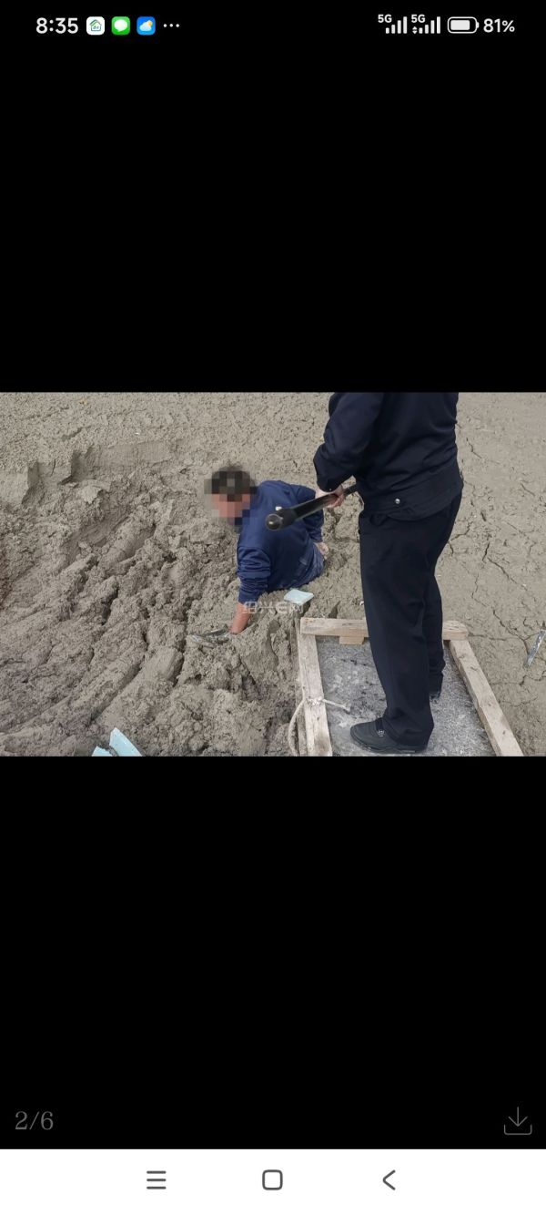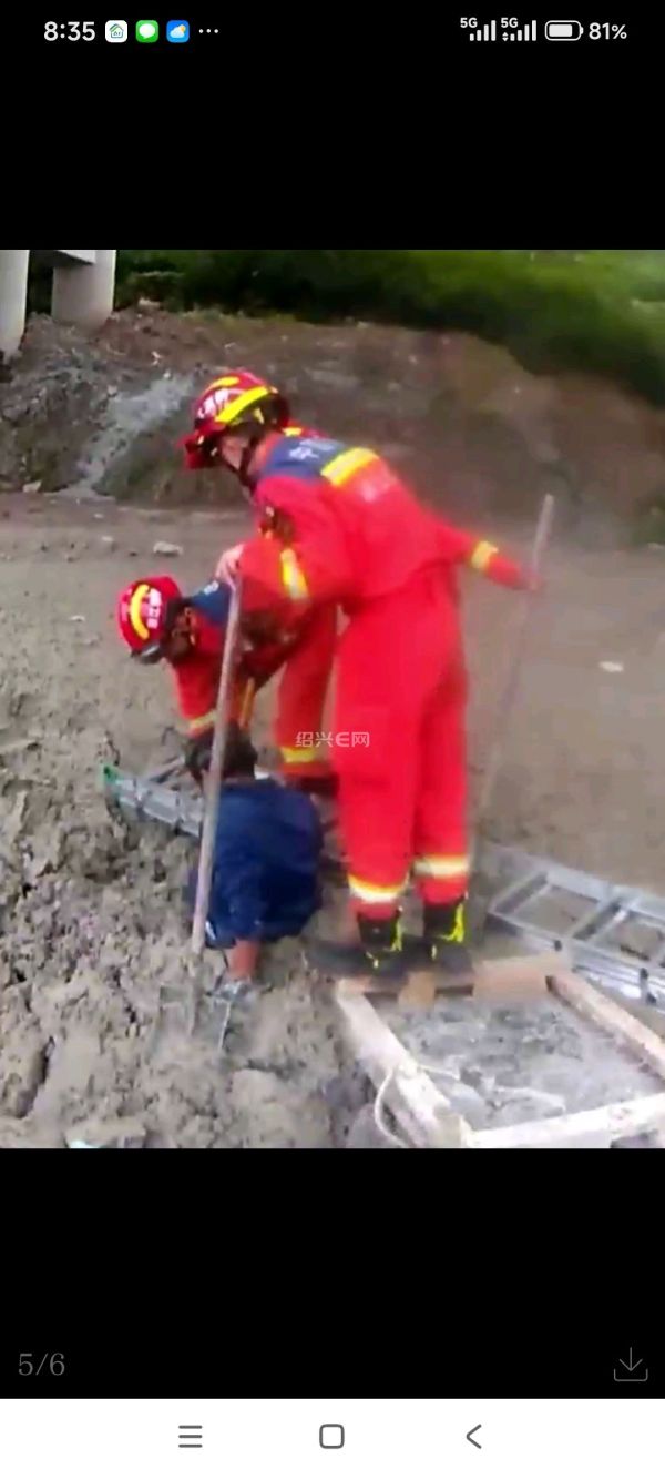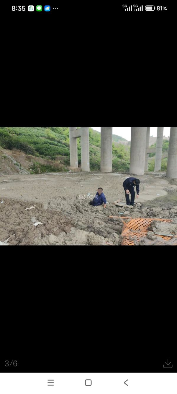 称央于村附近工地有人不慎陷入泥浆