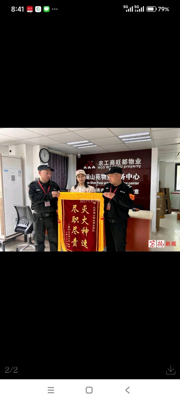近日,绍兴市柯桥区华舍街道纺都社区光明澜山业主舒小珍,将一面绣有“灭火神速,尽职尽责”的锦旗送到了旺都物业澜山苑物业服务中心,以此向物业保安团队致以诚挚谢意,这背后究竟有怎样的故事呢?