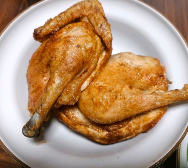 鸡做了盐焗,用空气炸锅烤的,超级好吃。