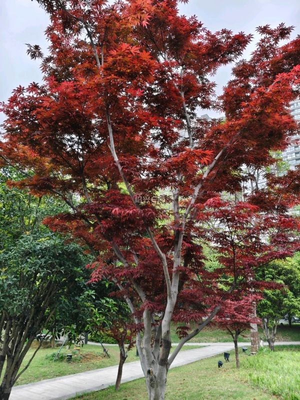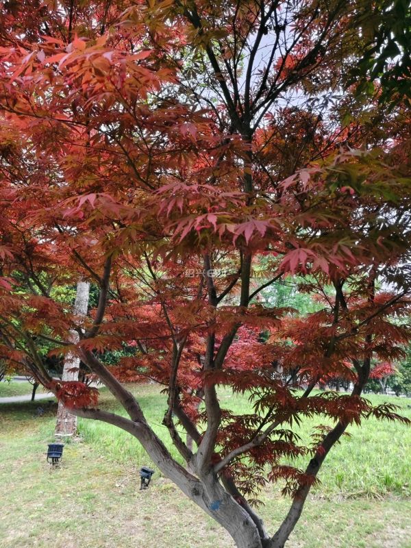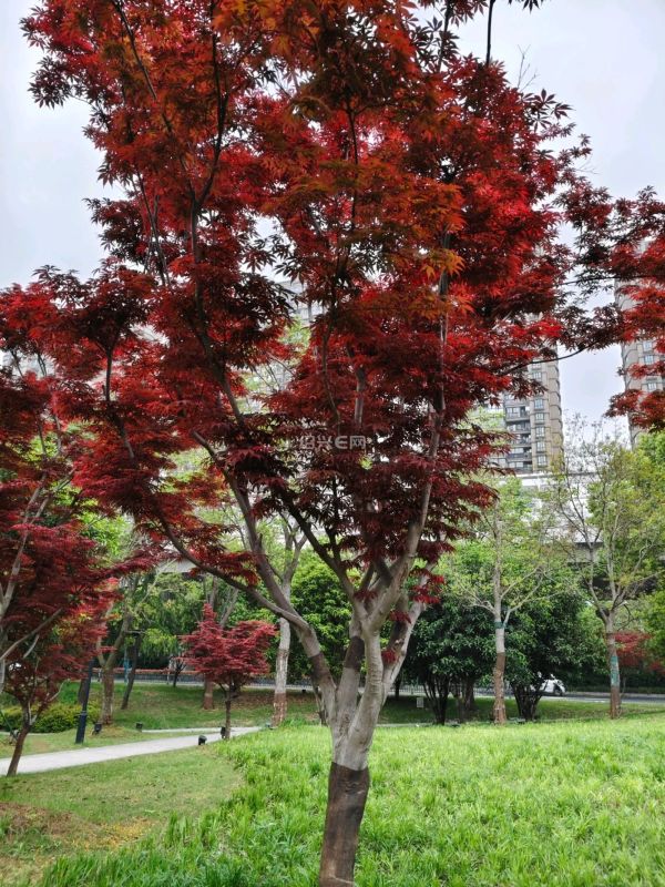 小区周边的小公园的红枫树,跟春天的一片绿意盎然形成了鲜明的对比。火红火红的。非常的喜庆,好漂亮。