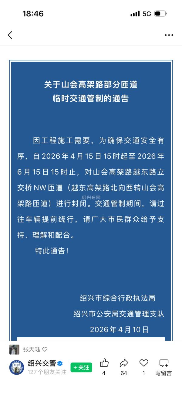 回 1楼(08080820) 的帖子 08080820:是不是还是上次封闭1个月的匝道(2026-04-13 20:18)