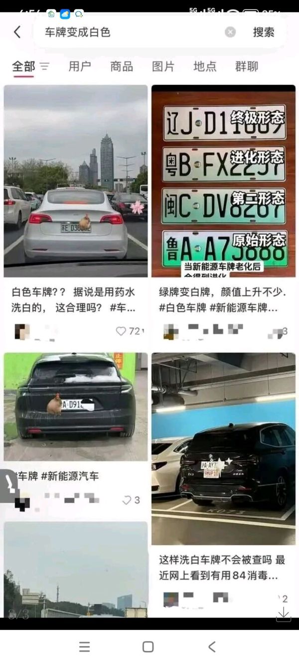 记者通过社交平台搜索发现,国内多地均出现白底黑字的新能源汽车号牌,有网友表达了对这种车牌风格的喜爱,认为其更具高级感。