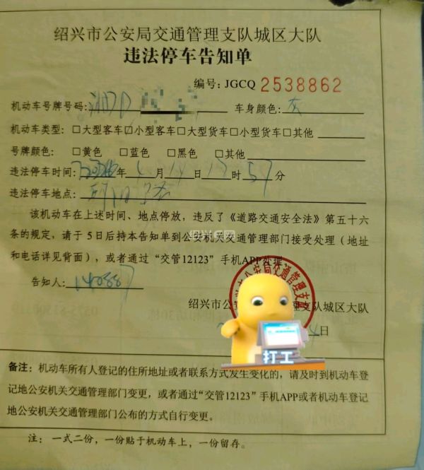 我前几天也是被贴的这样的罚单,回去拿东西,小区门口停了5分钟出来发现被贴了!如果你最近没啥违章记录可以免罚,这个你等12123APP录入之后,会显示0分0罚款,看个1分钟的视频就免罚了!无需过度担心!