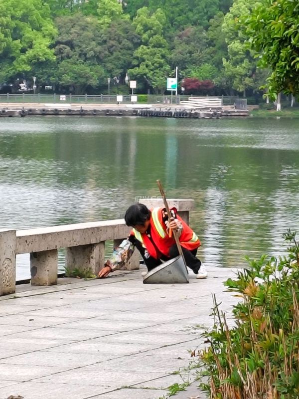 今天早上看见了河道清洁工人和公园里的绿化清洁工人,这几天河道里的的漂浮物和水草很多。河道清洁工说工作量比以前增加了许多。公园的清洁工不光要扫地上的落叶和垃圾。还要把石头缝隙里长出的杂草也拔掉。工作量也增加了许多。我们周围小区居民清洁的环境离不开这些清洁工人默默地付出。向他们说一声感谢。