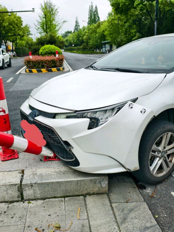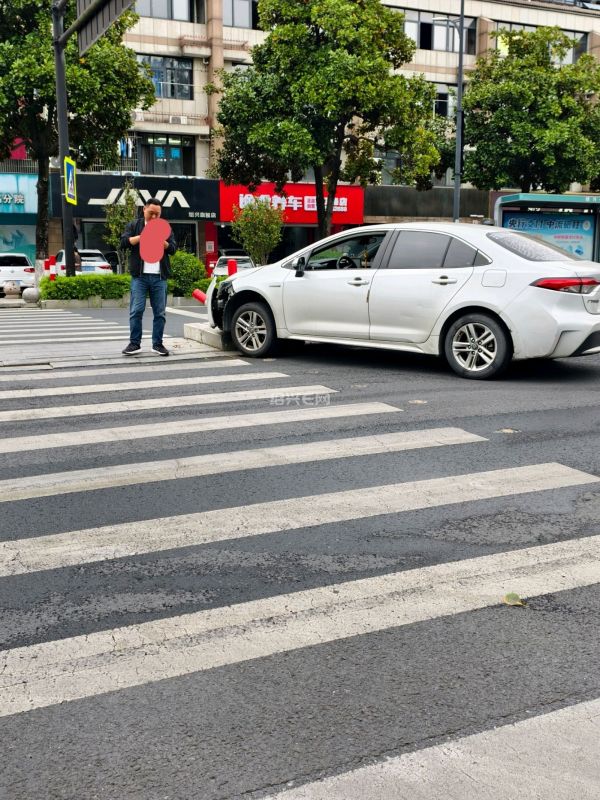 东池路上一辆私家车从白马路出来左转时撞上了这里的石坛上。