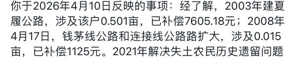 回 第4楼(zgq99007)的帖子 zgq99007:对呀,是你无理取闹吧,那个时候就赔这么点的,我们城东都只有一万三一亩 (2026-04-17 16:44)