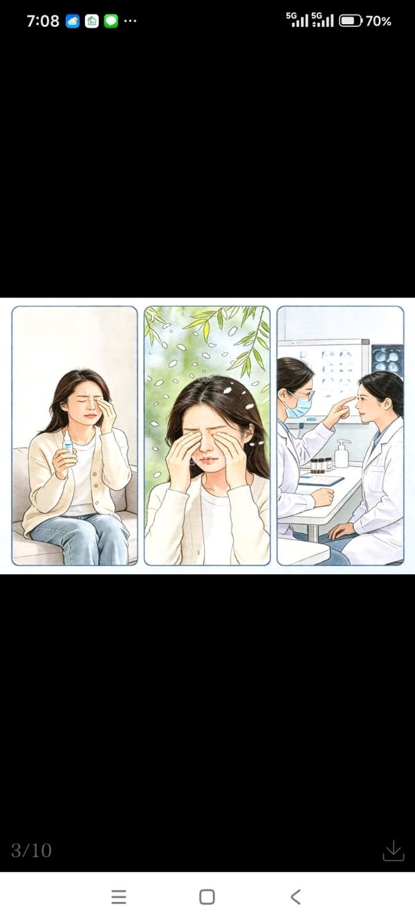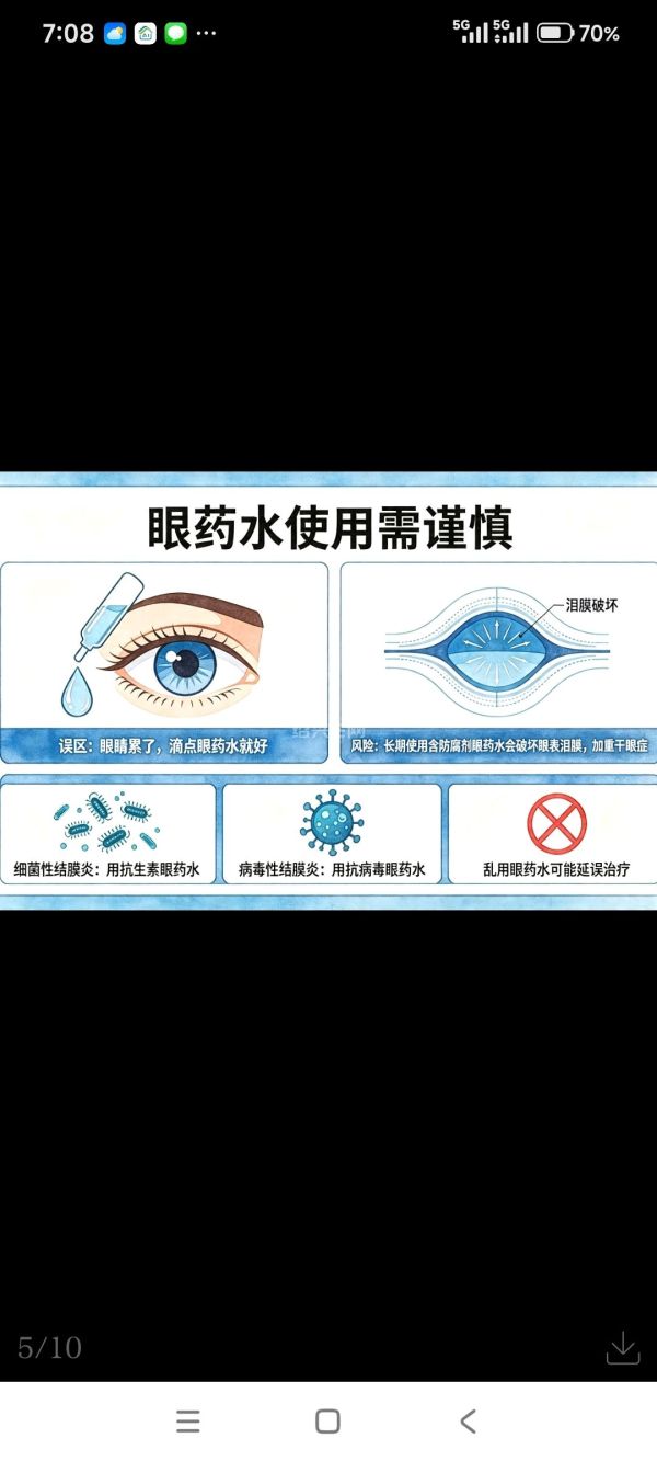 短暂用眼导致的轻微干涩,比如连续看屏幕一小时后的眼部不适,闭眼休息5~10分钟即可缓解,不必依赖眼药水。医生提醒,市面上不少眼药水含有防腐剂,长期使用会破坏眼表泪膜,反而加重干眼症。