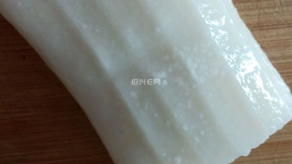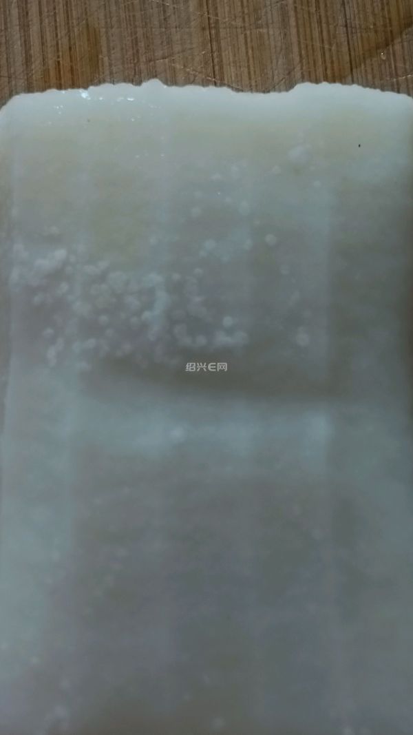 刚刚拿出来准备炒了吃,发现年糕上有好多白色的斑点。