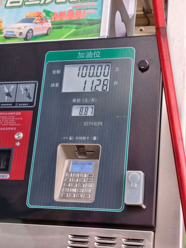 油箱里还4格油,路过又加了100元。8.87一升