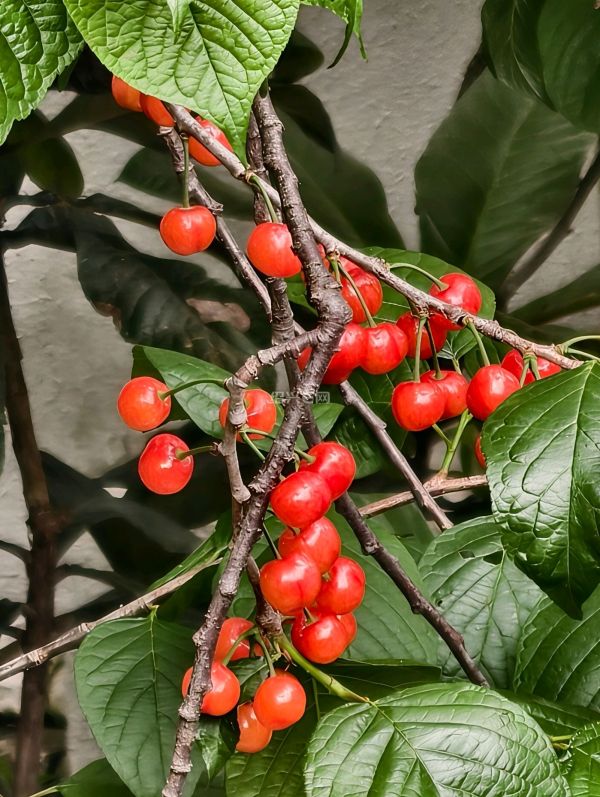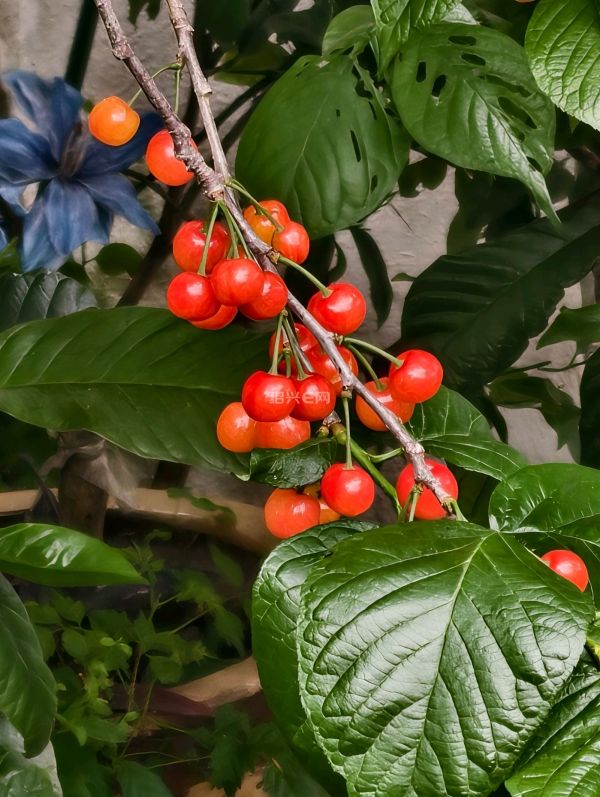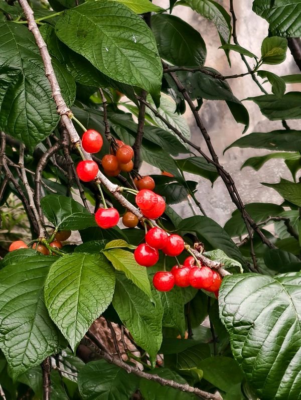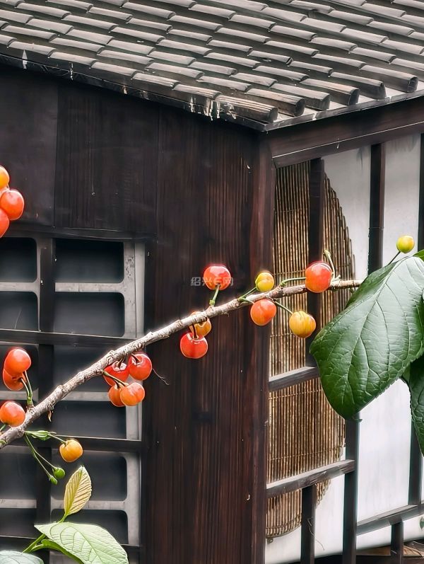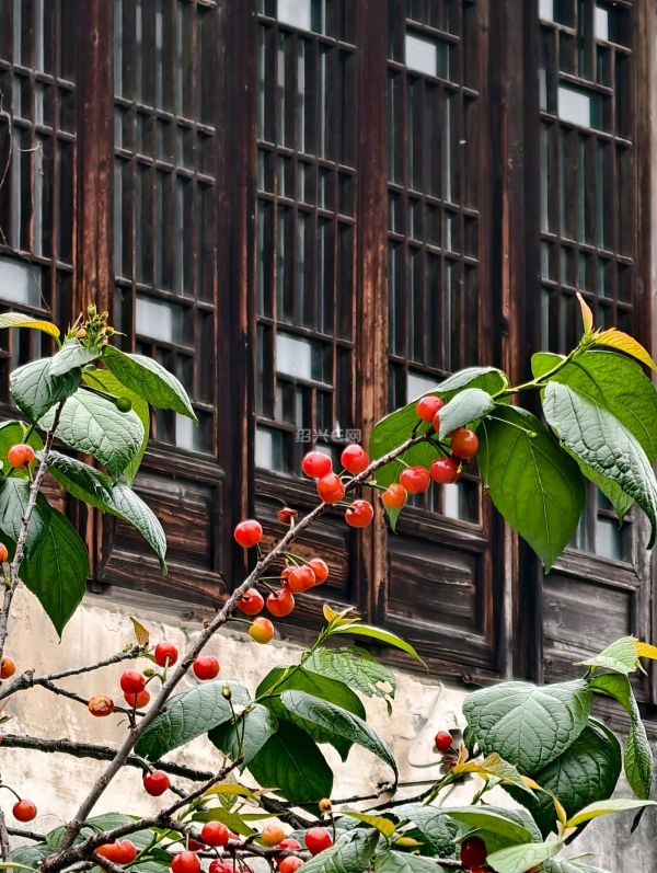 府桥头的樱桃红了,吸引拍照爱好者和 观望者。