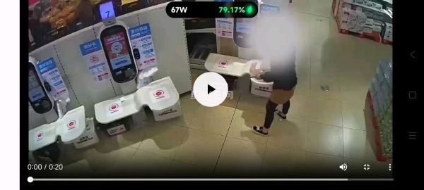 李先生在对账过程中,发现账有些对不上,便去翻看了店内的视频监控,只见一中年女子在自助收银机前结账时,前几样商品都是假装扫码,只有最后一两样商品才是真的扫码付了钱。