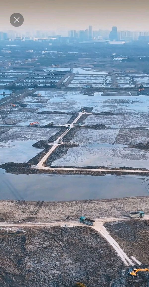图片来自微x视频号:我爱大绍兴。工程热火朝天规模宏大,绍兴公园天花板。杭州湾南冀排涝工程,省重点项目。
