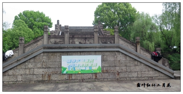 在稽山园西面有一座叫岸头桥的来头较为特殊,它连接环城南路,桥面与桥栏所采用的石材比较老旧粗糙,很可能不是稽山公园建园后建造的,而是以前岸头村留下的。稽山公园的前身是城南岸头村,环城河改造时岸头村拆迁,建起一个公园。旧时岸头村与环城南路一水相隔,村民靠摆渡船进城。后來建起了石桥。在桥洞上方还隐约可以见到"岸头大桥″的字样。说明以前村民们已把这样的桥称为"大桥″了。~走进稽山公园大门,首先见到的是长安桥。它是一座非常典型的石拱与石樑相结合的桥樑,在绍兴著名的古桥群中的太平桥、西跨湖桥都是以这样的结构模式建造的。