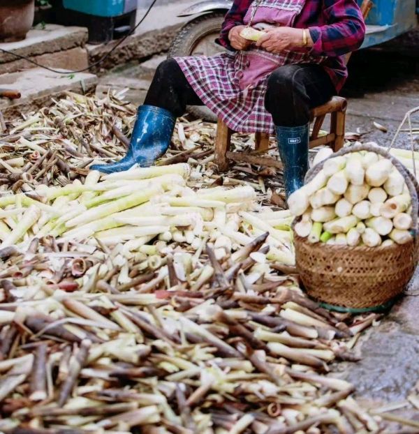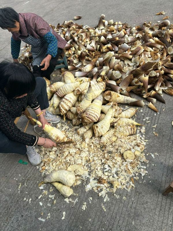 阳光正好,阿婆们坐在晒场上剥笋,刀起刀落间,带着泥土气的春笋褪去外壳,露出嫩白的笋肉。
