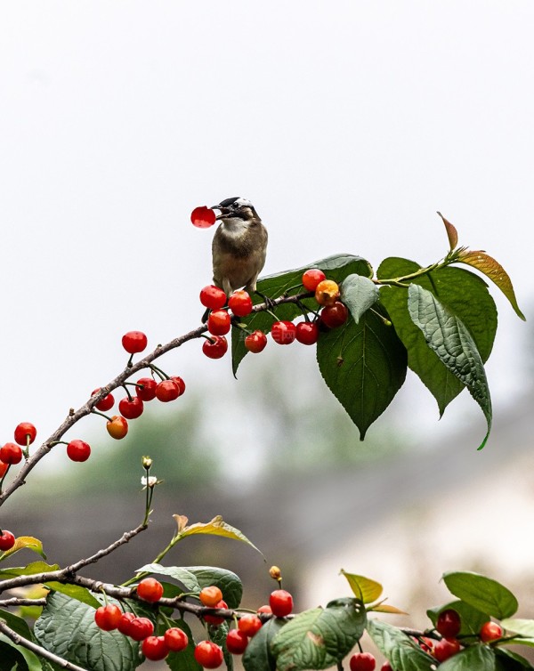 还能拍到鸟叼樱桃的时刻